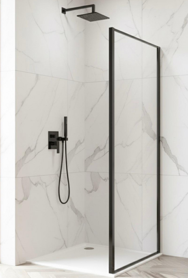 Перегородка стационарная CeramaLux 100х190 см черный матовый/прозрачное CL100 Black