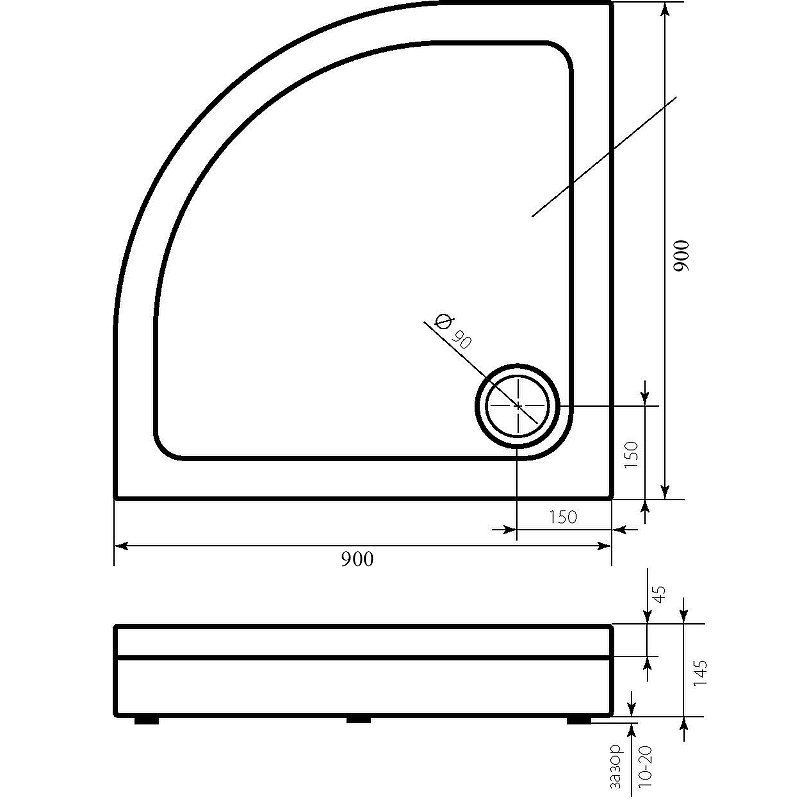 Форма: четверть круга |