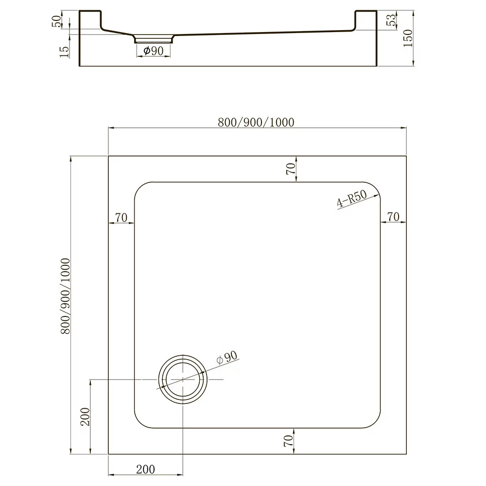 Акриловый квадратный поддон Veconi Tezeo TZ-52 90х90х15 см белый TZ52-90-C5
