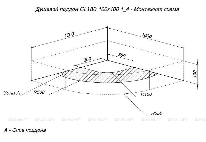 Акриловый поддон 1/4 Aquanet GL180 100х100х19 см 265563