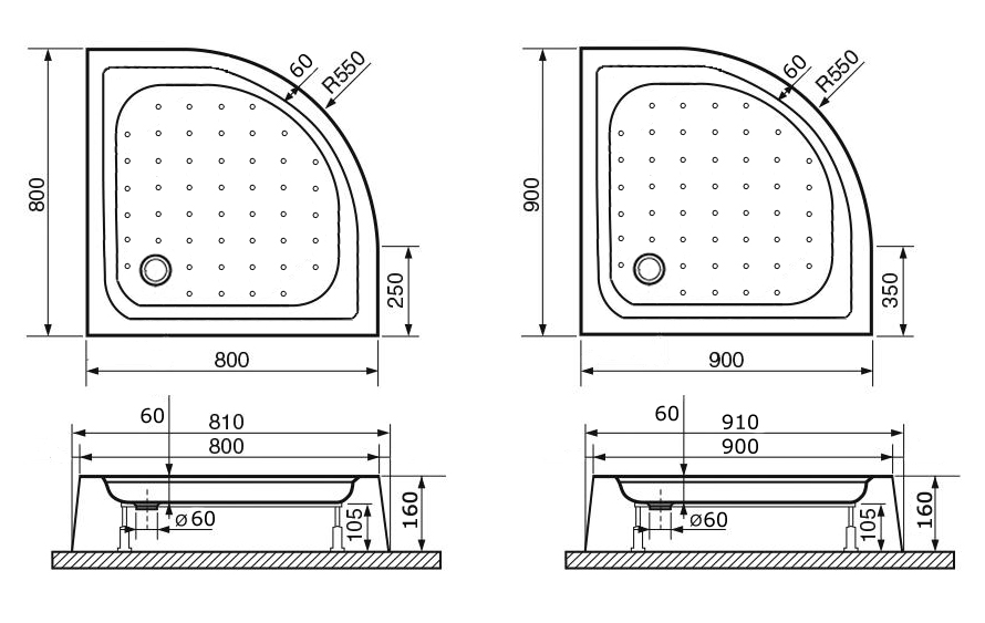 | Оснащение | Ножки в комплекте, технический уклон для стока |