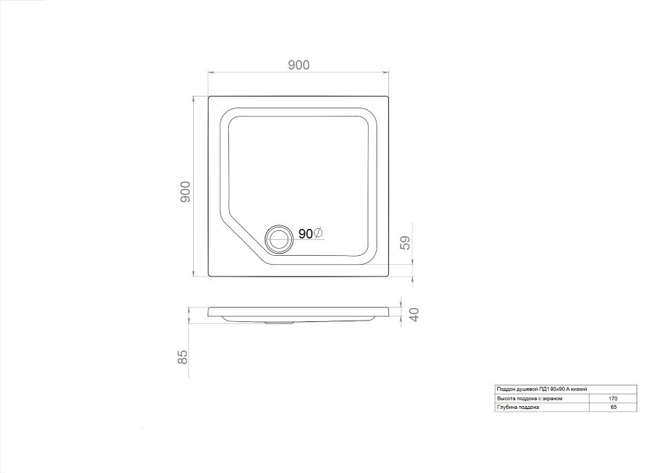 Акриловый поддон Triton 90х90х17 (ПД1) Щ0000004026