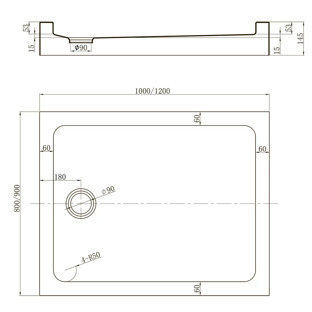 Акриловый прямоугольный поддон Veconi Tezeo TZ-54 100х80х15 см белый TZ54-10080-C5