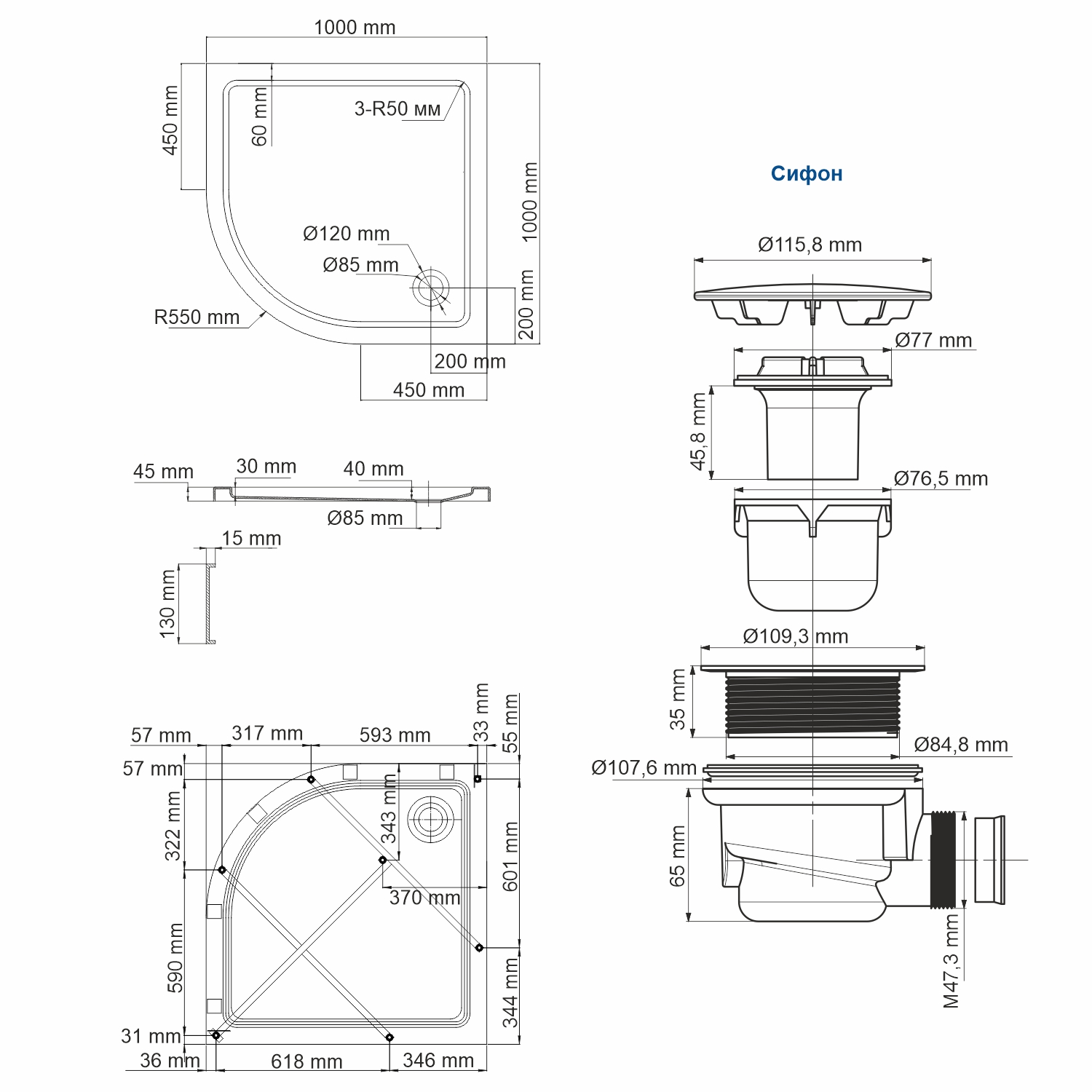 | Оснащение | Каркас из стали, регулируемые ножки, сифон, съемный экран |