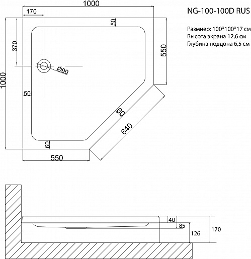 Пятиугольный душевой поддон Niagara NG-100-100D RUS (100х100х17 см) 100100DRUS