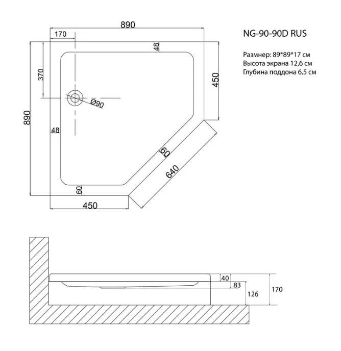 Пятиугольный душевой поддон Niagara NG-90-90D RUS (90х90х17 см) 9090DRUS