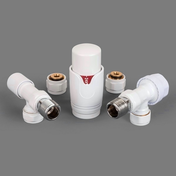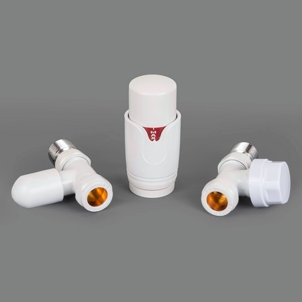 Комплект радиаторный Delta mini угловой 1/2 с термоголовкой (41400316) М30х1,5 RAL 9016