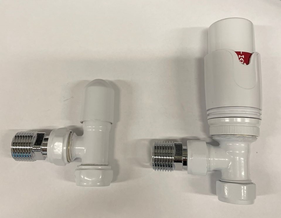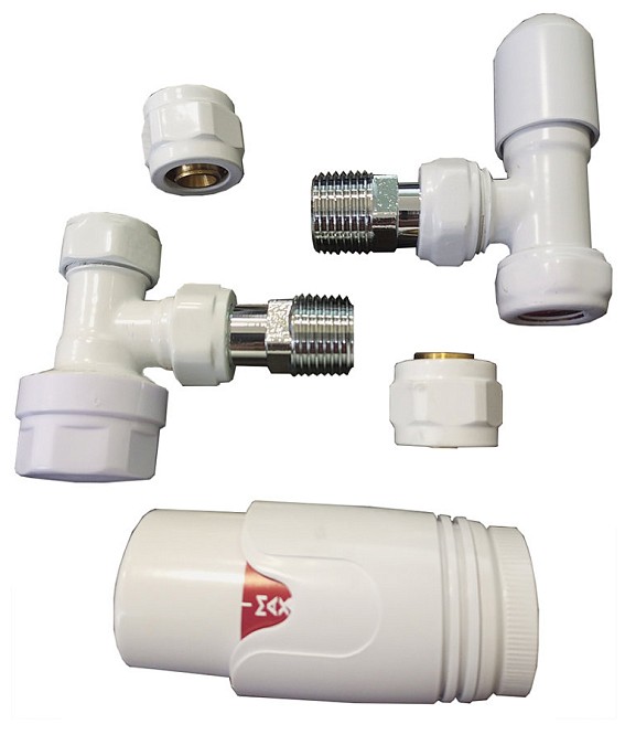 Комплект радиаторный Delta mini угловой 1/2 с термоголовкой (5416003A) М30х1,5 RAL 9016
