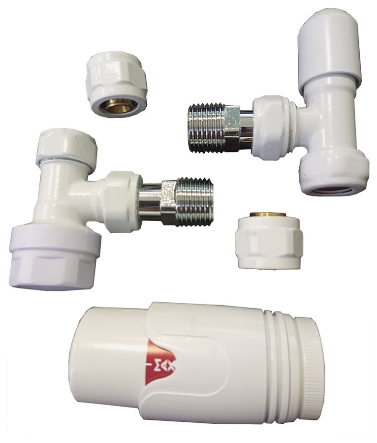 Комплект радиаторный Delta mini угловой 1/2 с термоголовкой М30х1,5 RAL 9016