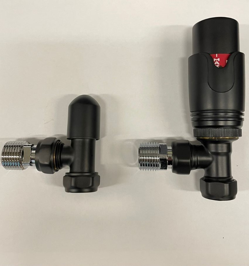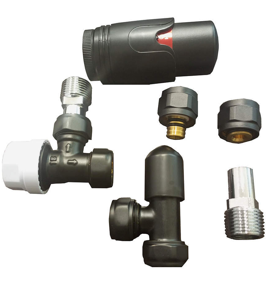 Комплект радиаторный Delta mini угловой 1/2 с термоголовкой (5505005A) М30х1,5 RAL 9005