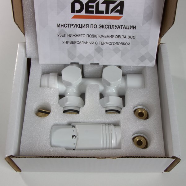 Узел нижнего подключения Delta DUO универсальный с термоголовкой (3015126) М30х1,5 RAL 9016 (Белый)