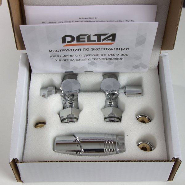Узел нижнего подключения Delta DUO универсальный с термоголовкой (3015127) М30х1,5 (Хром)