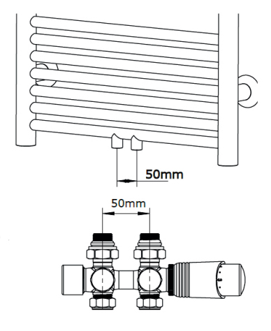 Соединение между радиатором и трубами может быть прямым на 180 градусов (трубы выходят из пола) или наклонными на 90 градусов (трубы выходят из стены)
