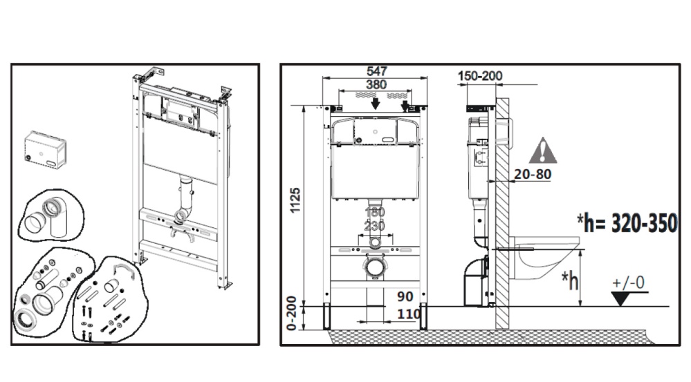 - Для унитазов с межосевым расстоянием 180 и 230 мм
