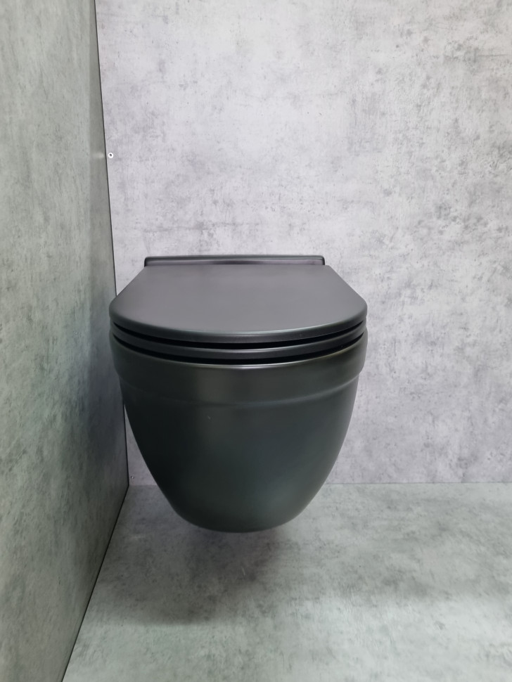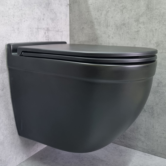 Подвесной БЕЗОБОДКОВЫЙ унитаз CeramaLux 2198MB черный матовый