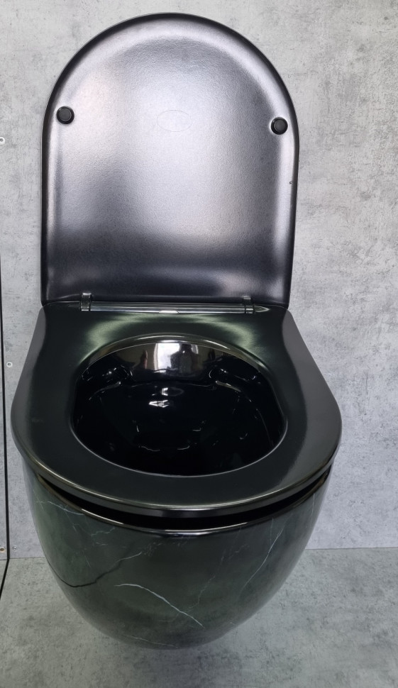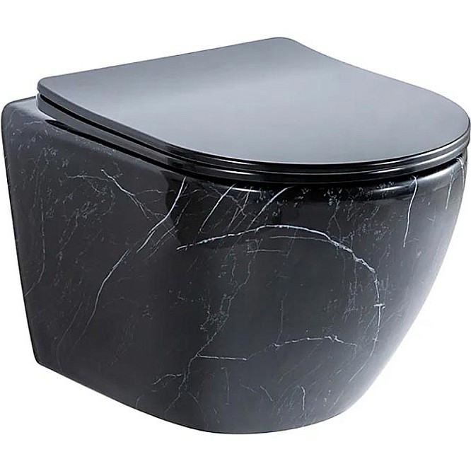 Подвесной БЕЗОБОДКОВЫЙ унитаз CeramaLux 2212BM черный мрамор