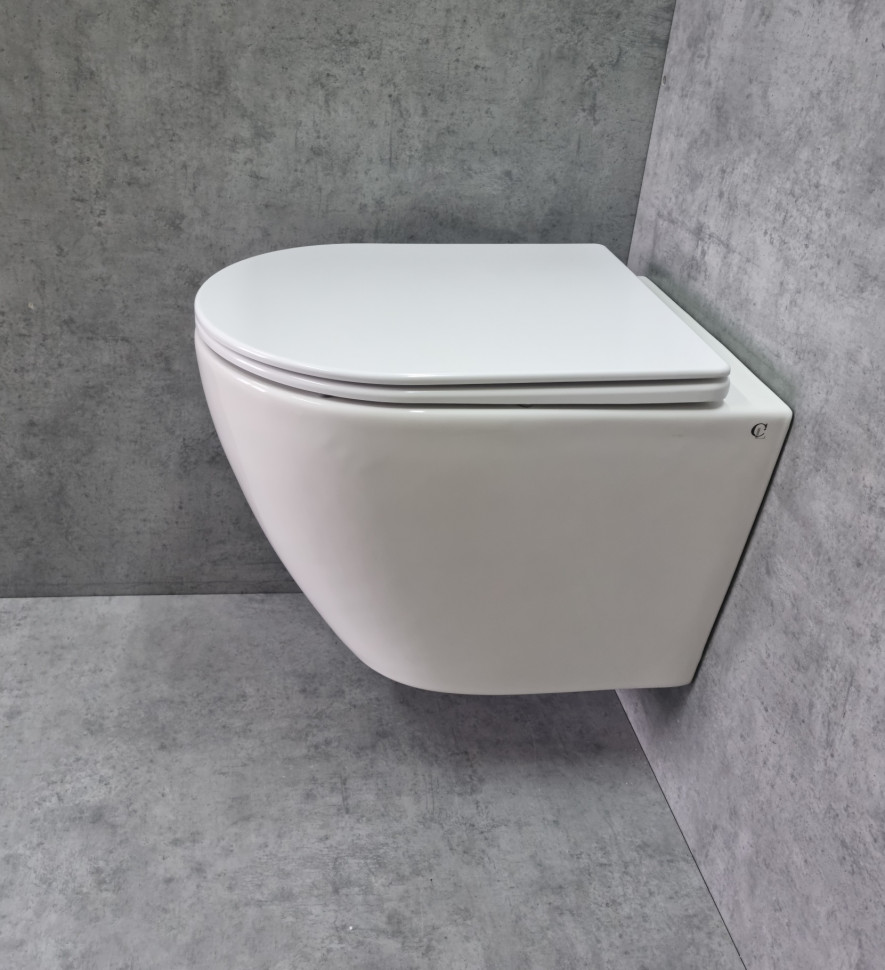 Подвесной БЕЗОБОДКОВЫЙ унитаз CeramaLux TR2196 смыв Tornado белый глянцевый