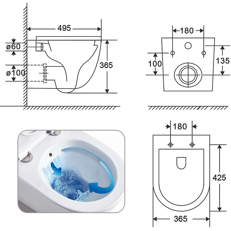 | Тип | Безободковый, Подвесной, С функцией биде |
