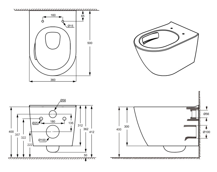 | Тип | Безободковый, Подвесной, С функцией биде |