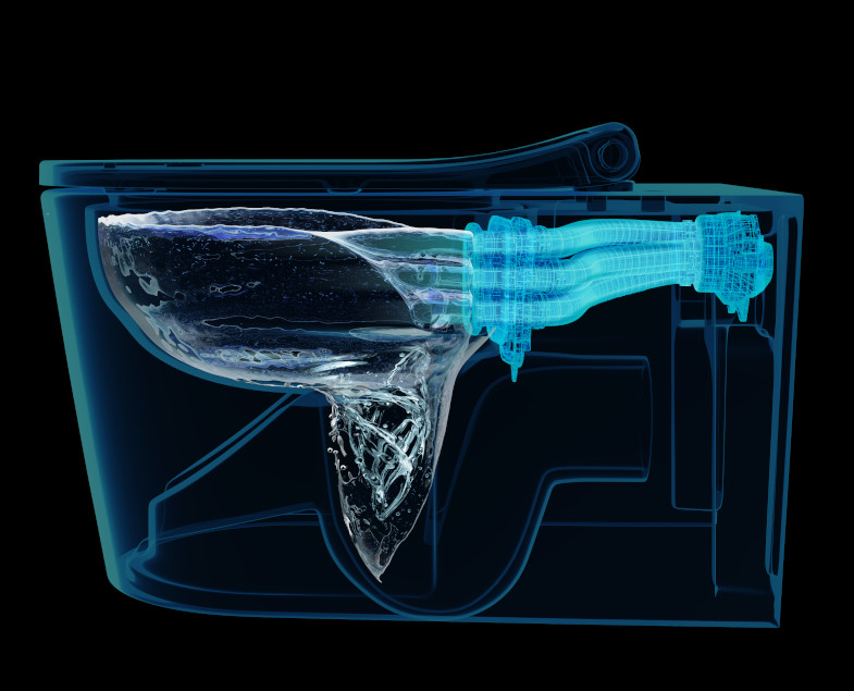 - В задней части QuantumFlush находится коллектор с сильным импульсом и 3 выходами, спроектированный по принципу ламинарного потока. QuantumFlush предназначен для очистки путем распределения воды самым мощным способом, без брызг и шума по всей внутренней поверхности унитаза. QuantumFlush имеет на 8,45 дБА меньше звуковой мощности, чем обычный унитаз. Это означает, что он производит примерно в 7 раз меньше шума.