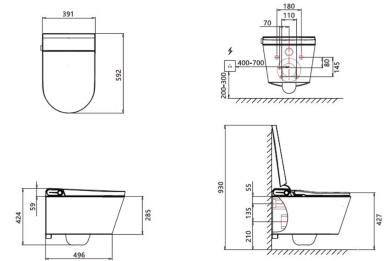 - Комплектация: основное устройство, пульт дистанционного управления, две батарейки ААА, инсталляция со скрытым бачком для установки унитаза, инструкция по эксплуатации.
