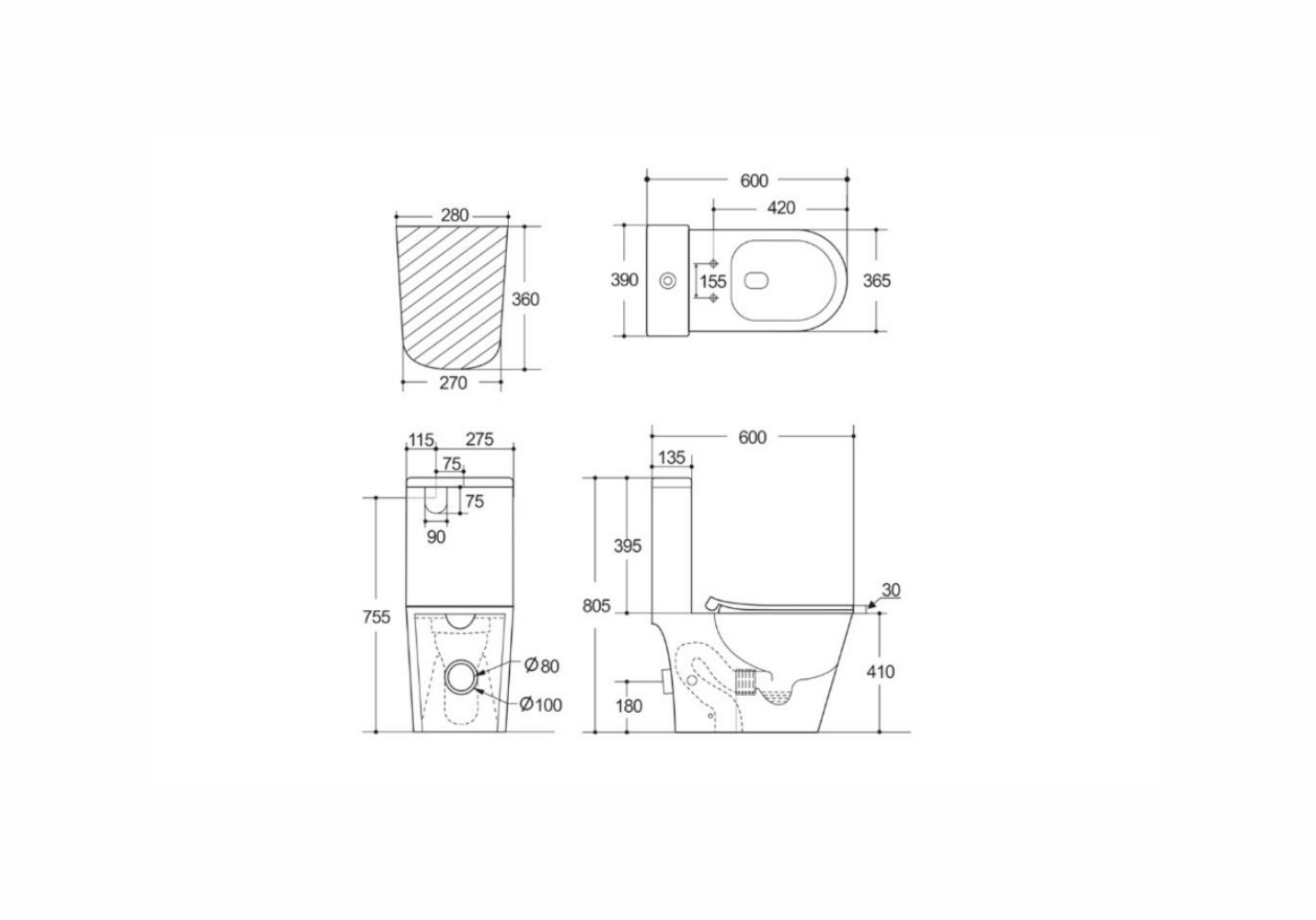 • удобство установки: открытая задняя часть облегчает доступ к сантехническим соединениям, что упрощает установку и замену унитаза;