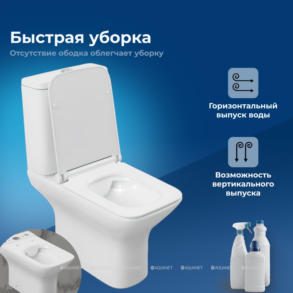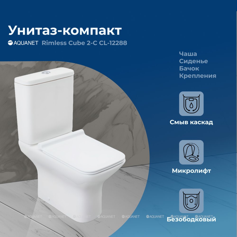 Унитаз-компакт БЕЗОБОДКОВЫЙ Aquanet Cube 2-C CL-12288 240208
