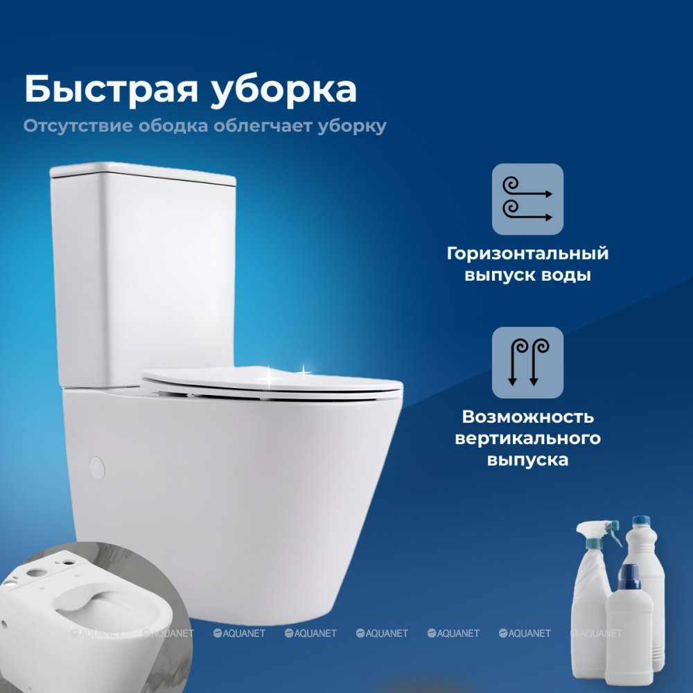 Унитаз-компакт БЕЗОБОДКОВЫЙ Aquanet Rimless Atago 2.0 C1 LX-2904 243546