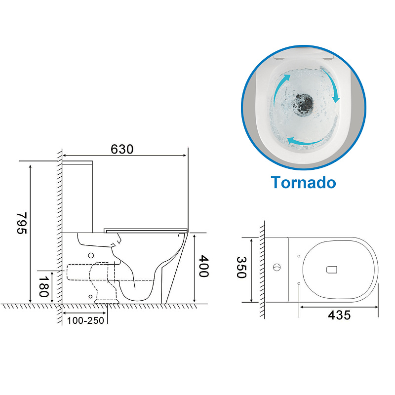 | Вид смывающего потока | Смыв Торнадо/ вихревой |