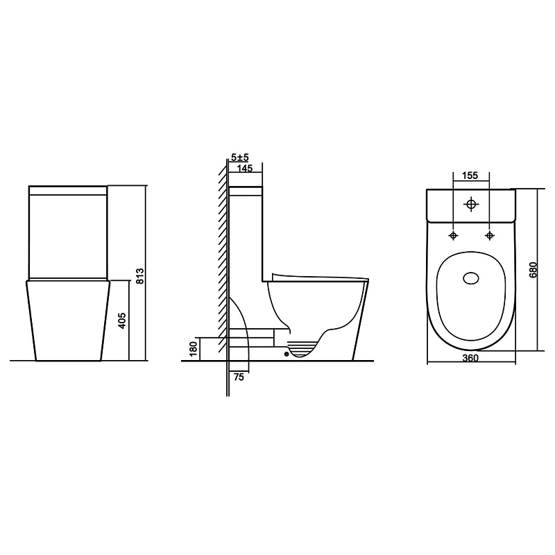 • Изготовленный из прочного и долговечного санфаянса, унитаз устойчив к механическим повреждениям, царапинам и воздействию агрессивных моющих средств.