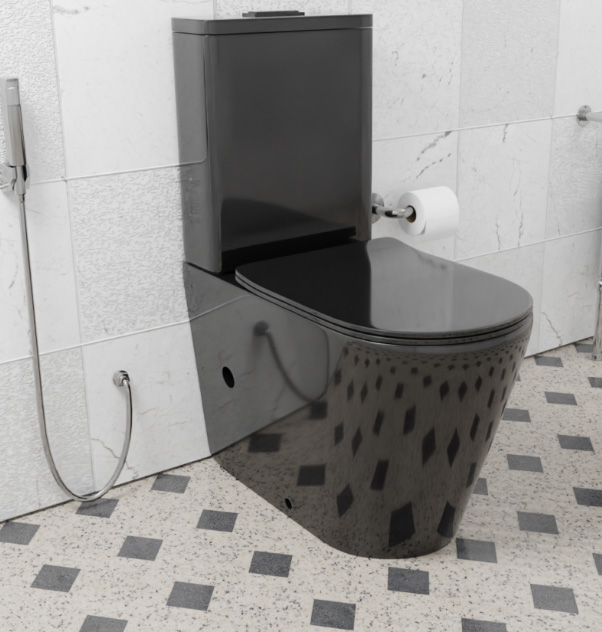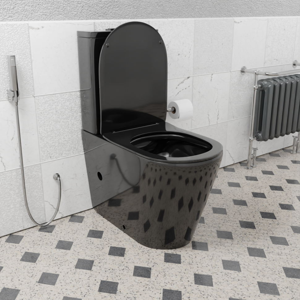 Унитаз - компакт БЕЗОБОДКОВЫЙ CeramaLux NS-2178-18 (Geberit) черный глянцевый