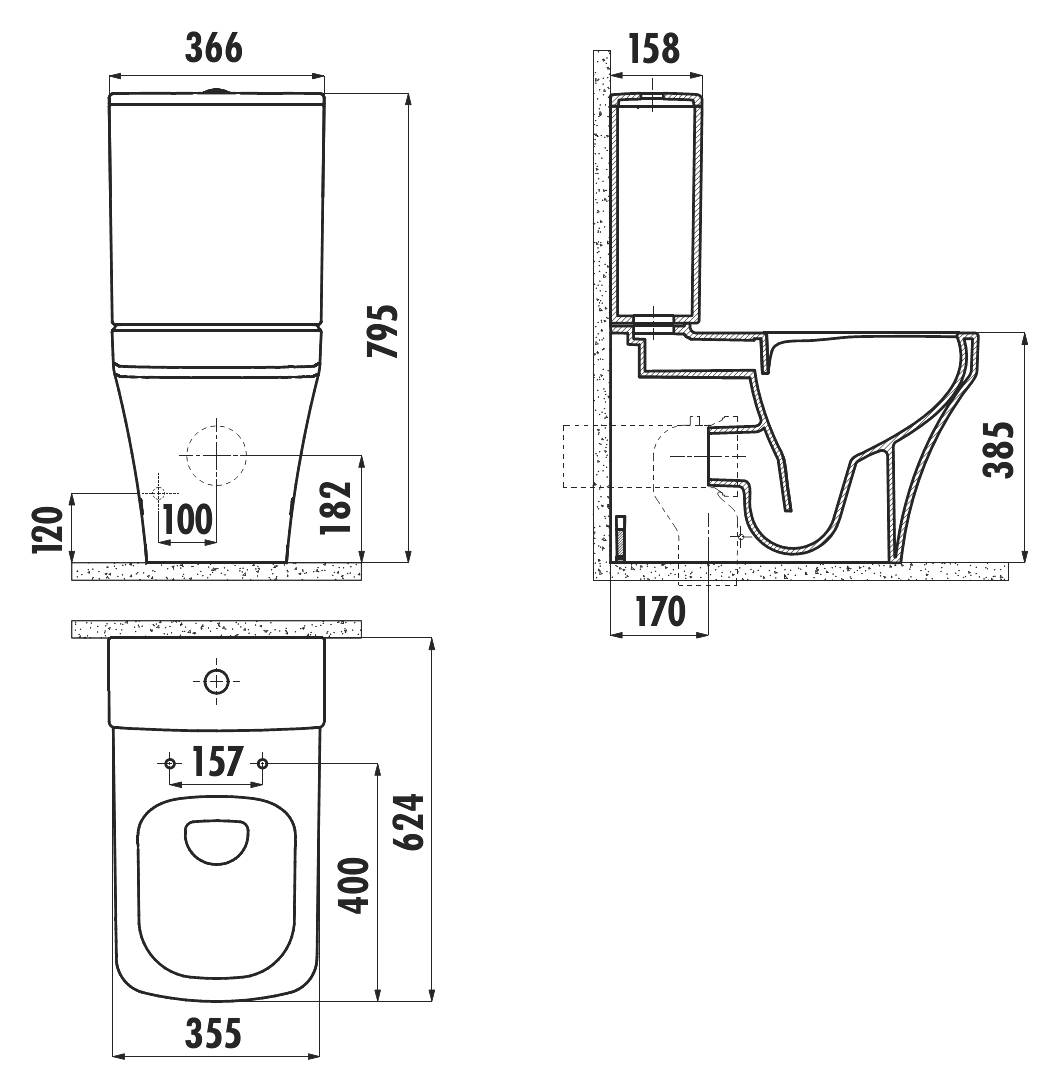 Унитаз-компакт БЕЗОБОДКОВЫЙ Creavit Solo SO361-11CB00E-0000