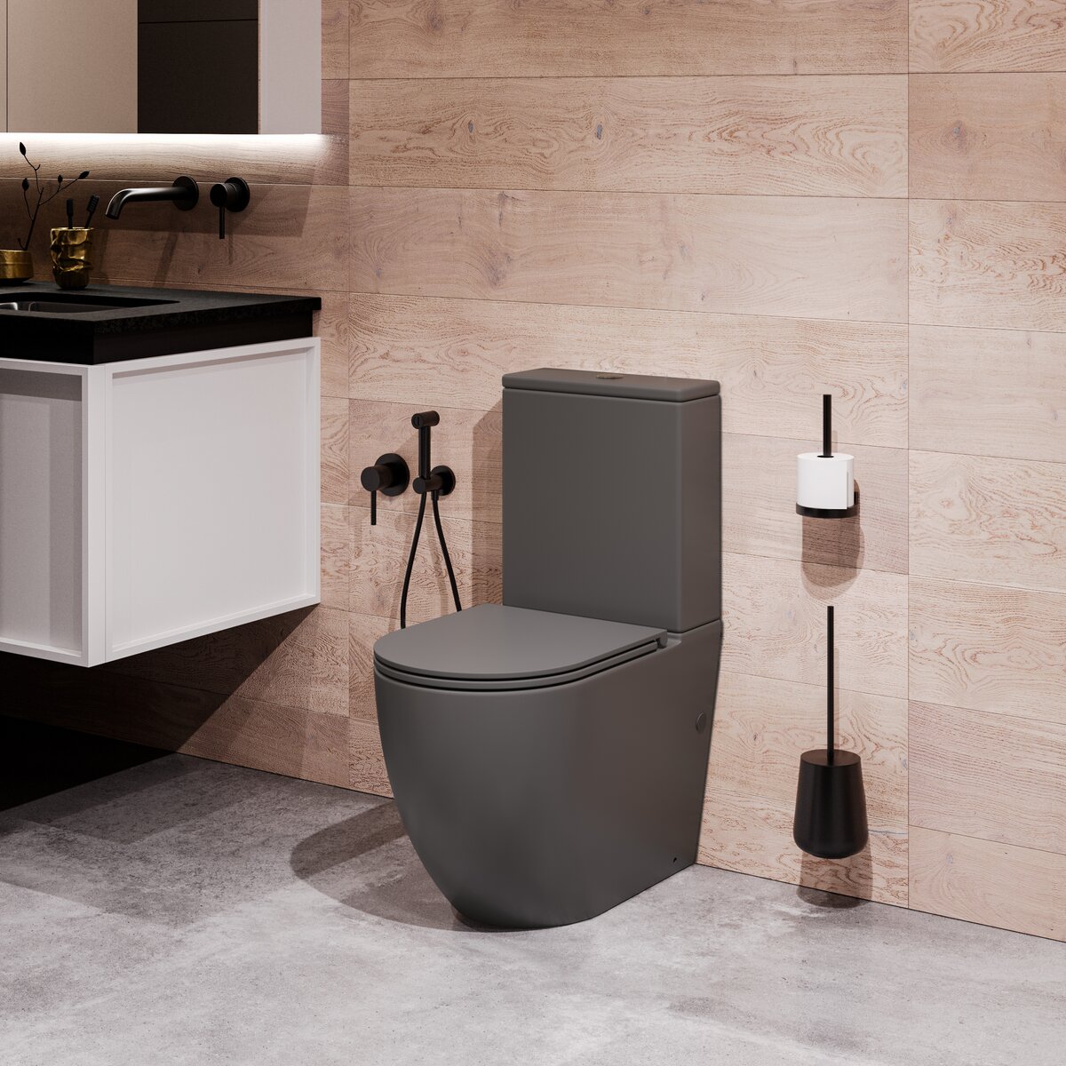 Унитаз-компакт БЕЗОБОДКОВЫЙ Grossman (смыв Торнадо) серый матовый GR-4494GMSQ