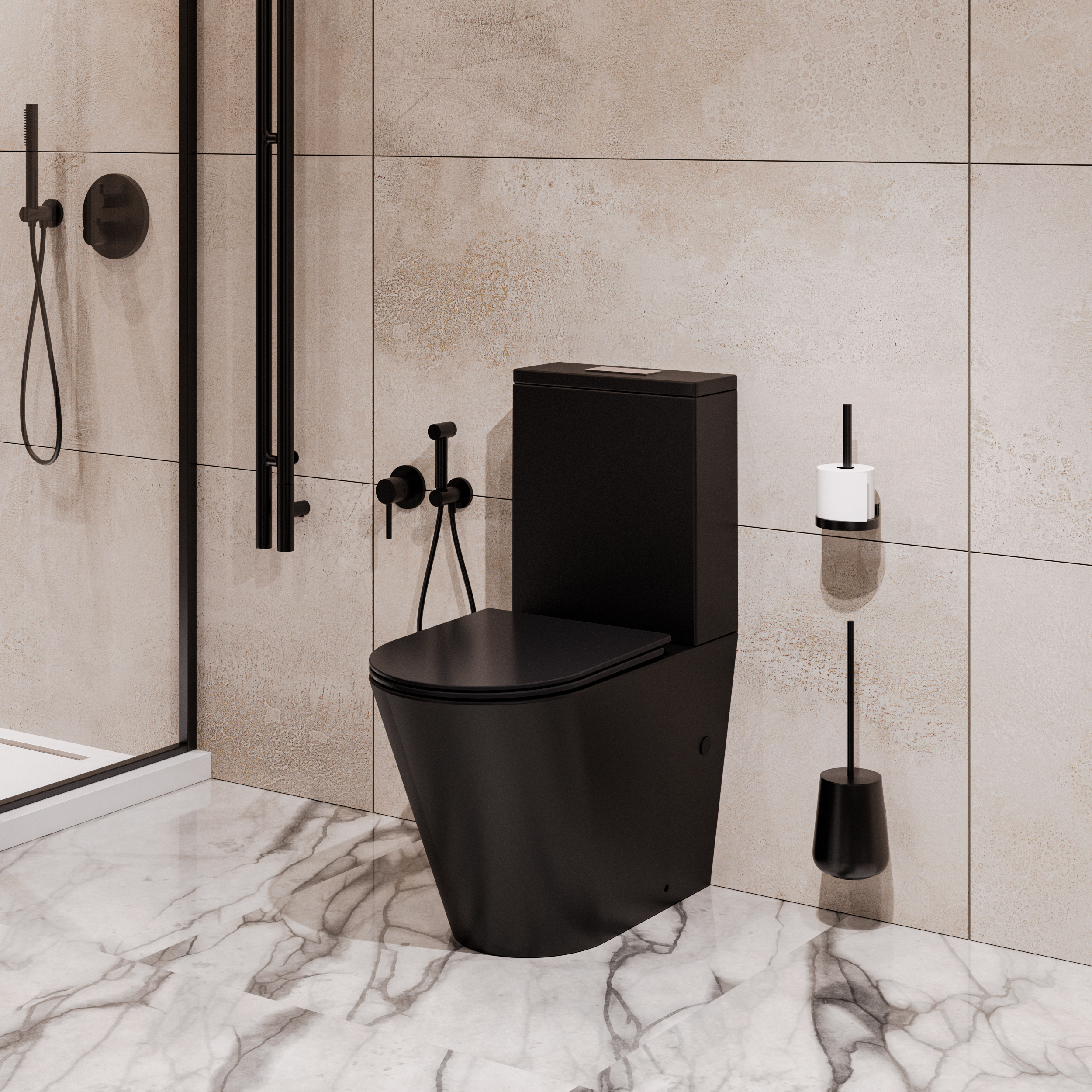 Унитаз- компакт БЕЗОБОДКОВЫЙ Grossman (Торнадо) черный матовый GR-4458BMSQ