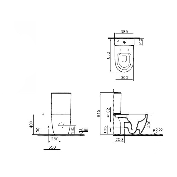 Унитаз - компакт БЕЗОБОДКОВЫЙ Vitra Sento Rim-Ex 9830B003-7204