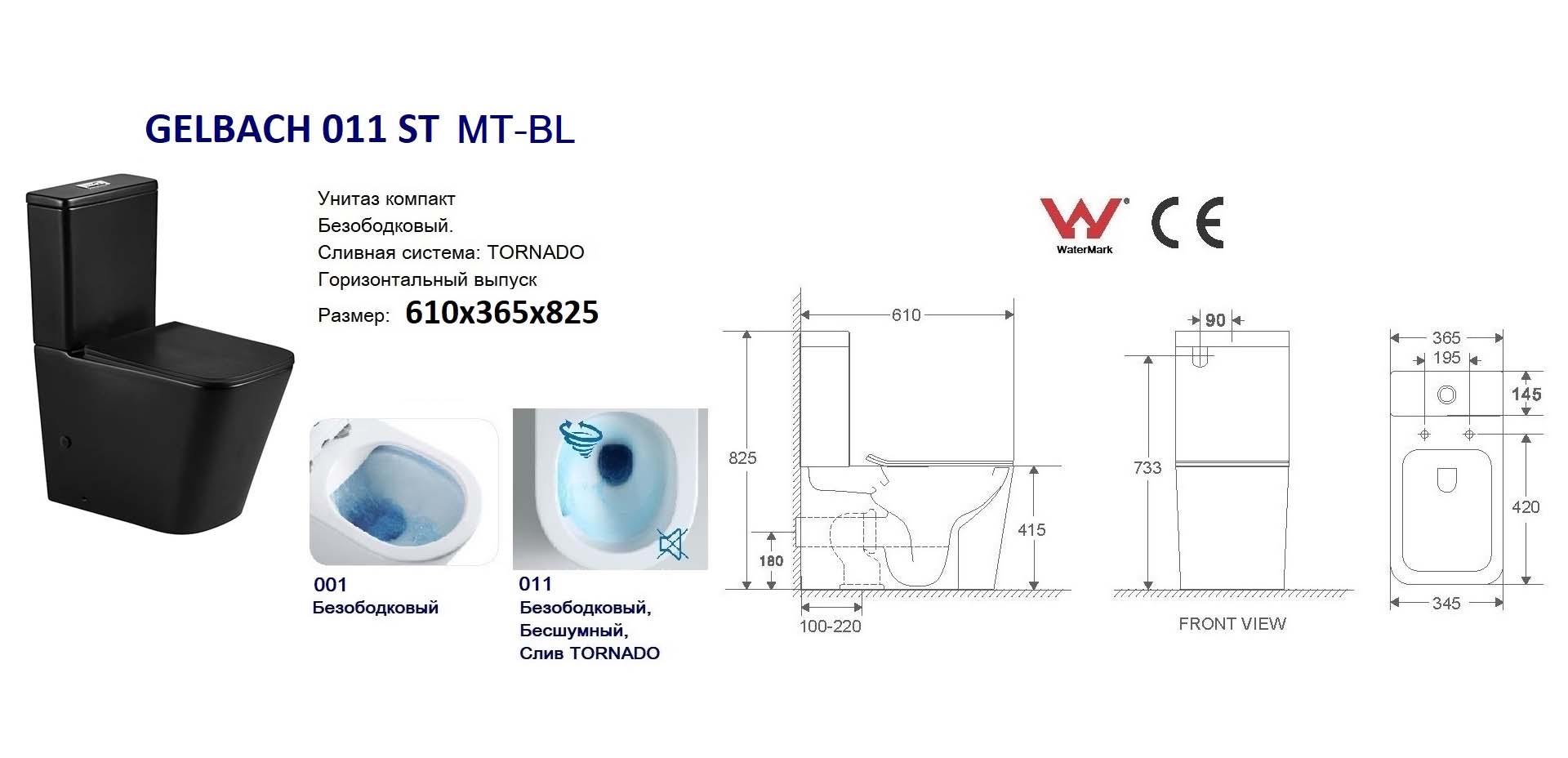 Унитаз-компакт БЕЗОБОДКОВЫЙ WeltWasser Gelbach 011 ST MT-BL черный матовый 10000012779