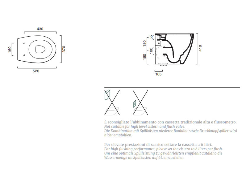 Унитаз напольный БЕЗОБОДКОВЫЙ Catalano Italy 0712520001/1VP52RIT00 крышка на выбор