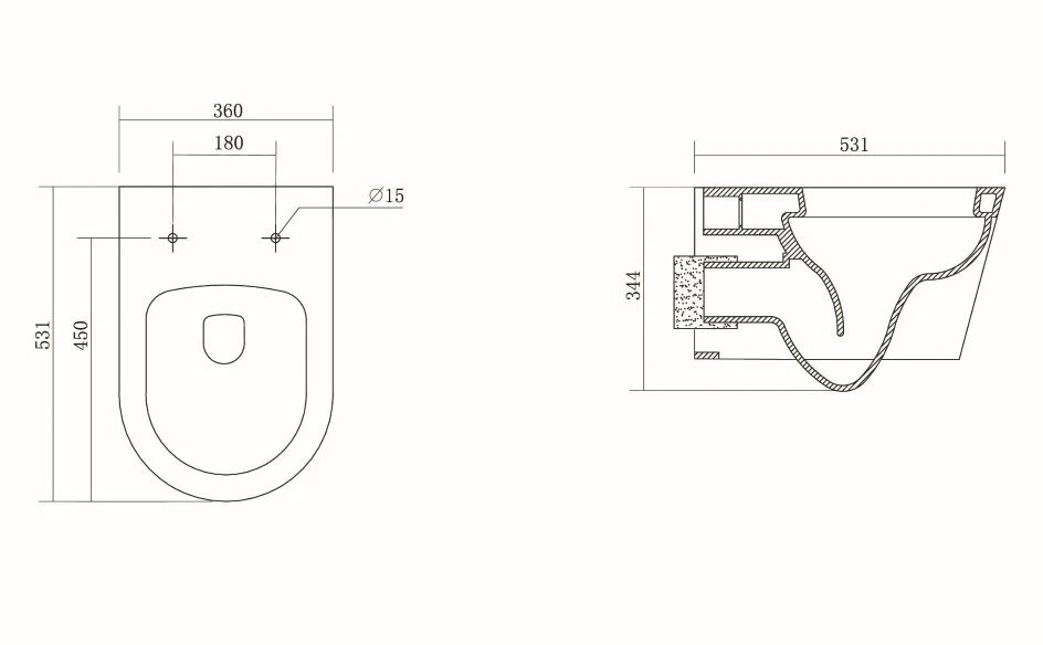 • Легкость установки: Унитаз легко монтируется на инсталляцию для подвесных унитазов, что позволяет сэкономить место и облегчить уборку пола. В комплект входят все необходимые элементы для установки.