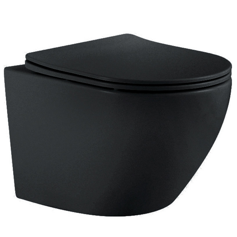 - Унитаз подвесной БЕЗОБОДКОВЫЙ Акватек Европа 52 см черный матовый AQ1901-MB