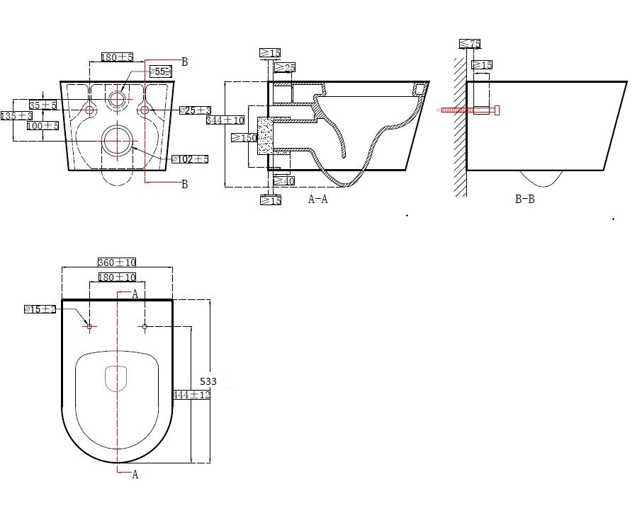 • Легкость установки: Унитаз легко монтируется на инсталляцию для подвесных унитазов, что позволяет сэкономить место и облегчить уборку пола. В комплект входят все необходимые элементы для установки.