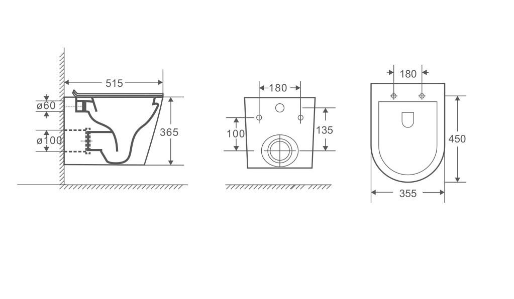 Межосевое расстояние отверстий для крепежных элементов составляет 108мм, что позволяет установить унитаз Precioso на большинстве инсталляций.