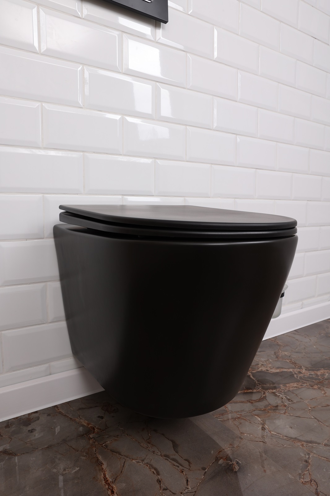 Унитаз подвесной БЕЗОБОДКОВЫЙ Alcora Stella Tornado черный матовый 51797497