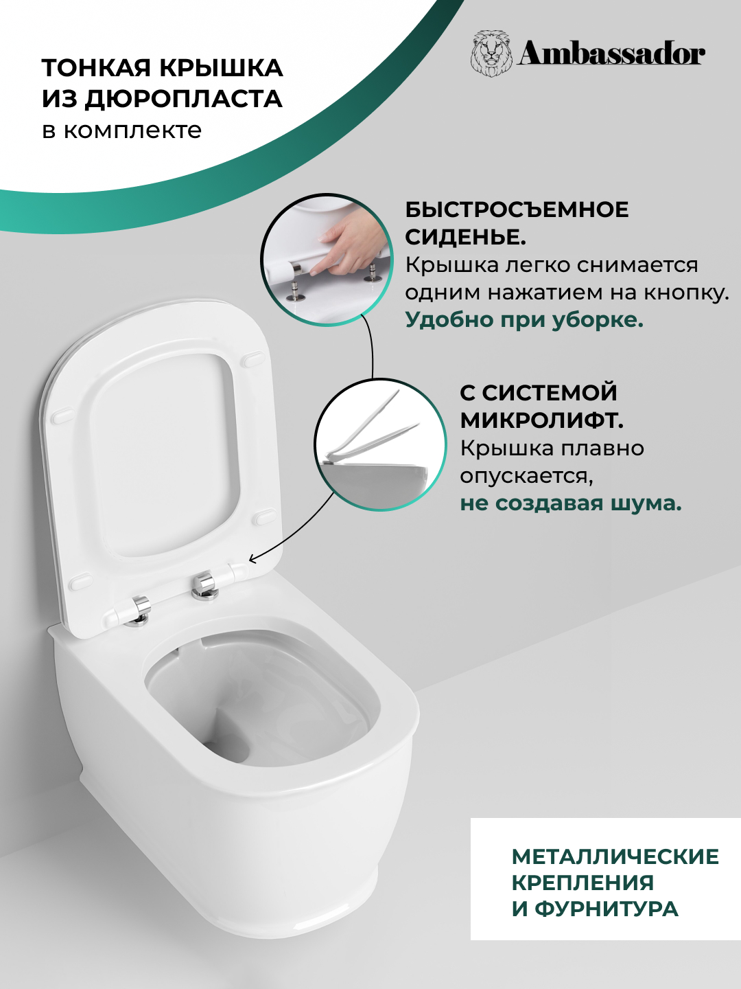 Унитаз подвесной БЕЗОБОДКОВЫЙ Ambassador Royal белый глянцевый 263K19002RS
