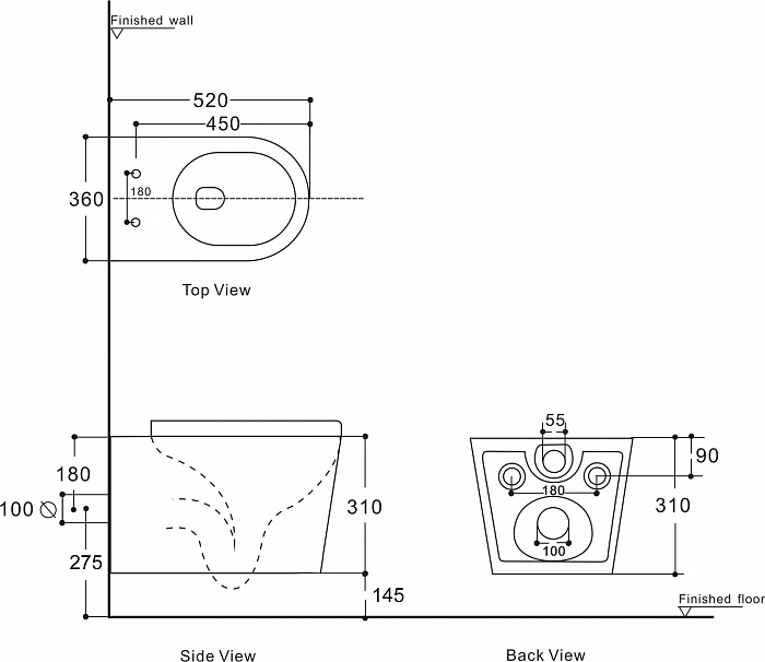 - Безободковая конструкция чаши RIMLESS с инновационным сливом воды.