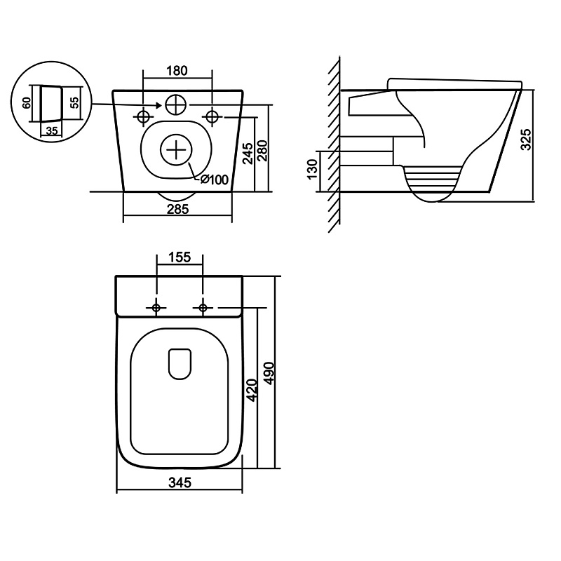 | Механизм слива | Требуется система инсталляции |