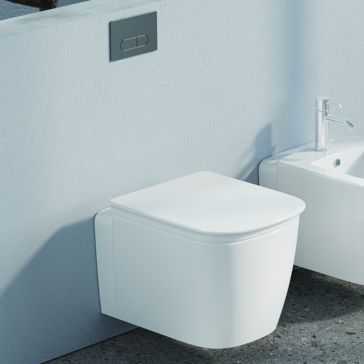 - Подвесной монтаж визуально расширяет пространство и облегчает уборку пола.