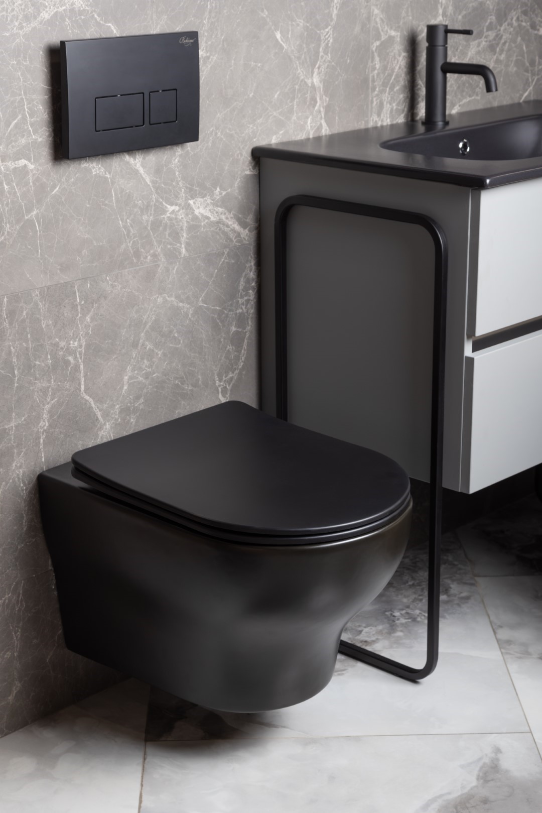 Унитаз подвесной БЕЗОБОДКОВЫЙ Boheme Fiore смыв Торнадо с крышкой черный матовый 978-SET-B