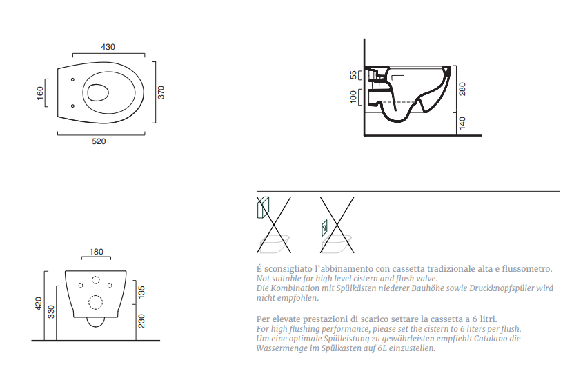 Унитаз подвесной БЕЗОБОДКОВЫЙ Catalano Italy 0711520001/1VS52RIT00 крышка на выбор