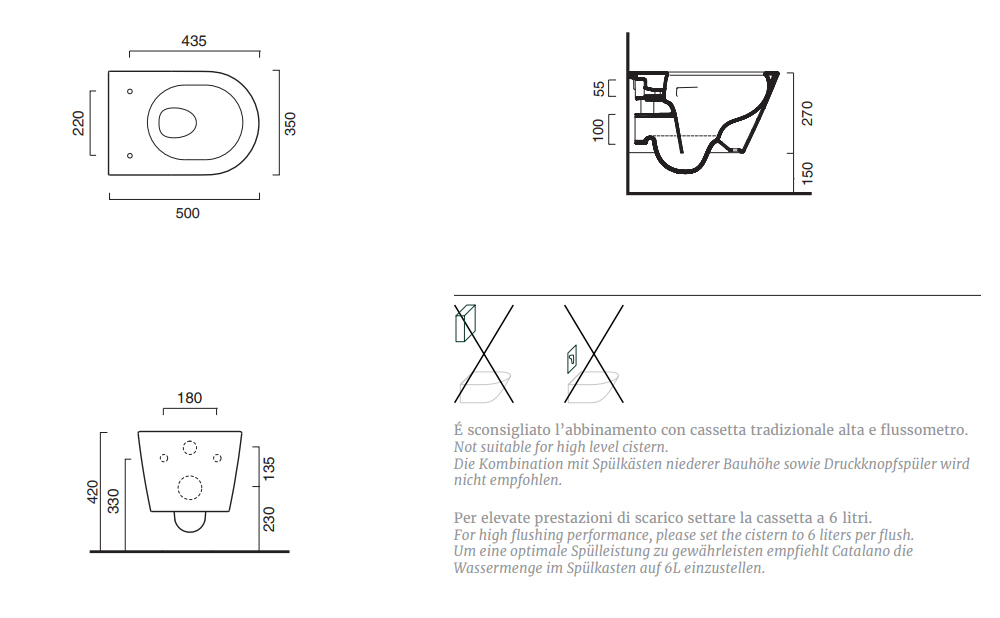 Унитаз подвесной БЕЗОБОДКОВЫЙ Catalano Zero 50 см белый глянцевый 0111500001/1VSZ50R00