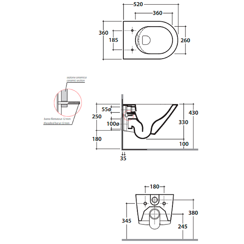 Унитаз подвесной БЕЗОБОДКОВЫЙ Globo Forty3 52 см FOS07BI